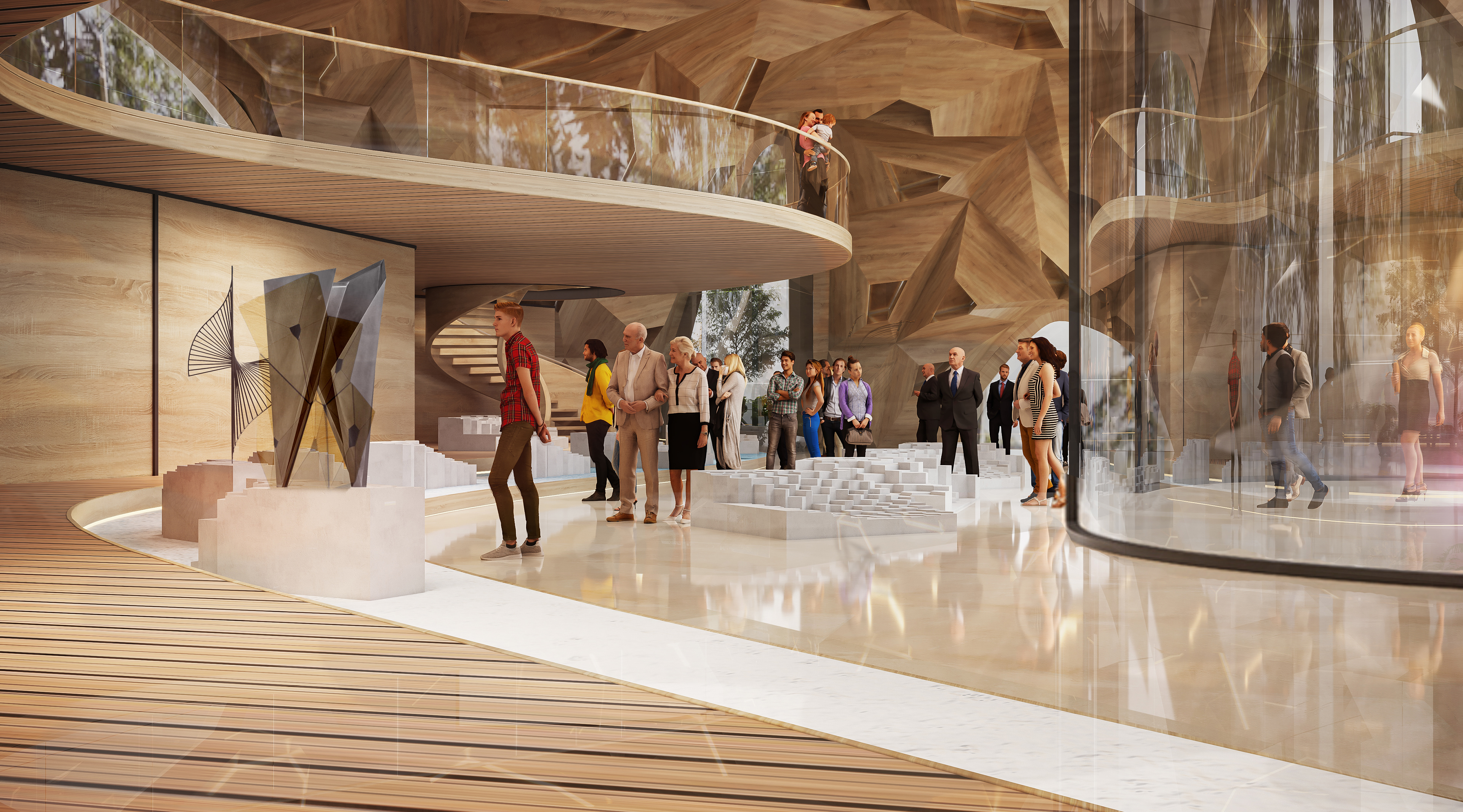 Shell proposal is the design of a rigid panel structure supported by computational design and digital fabrication. The starting point is the identification of a pentagonal module found in natural forms such as corals or animal shells.This geometric module is then replicated in space according to the needs of the construction and in communication with the facades that can be observed from the interior. For both, the context is mixed with activity and form, the interior finishes provide the qualities are combined with natural materials and fits well with the place. Also, it explores the possible combinations of this module and the artistic shadows that it reflects through its holes.