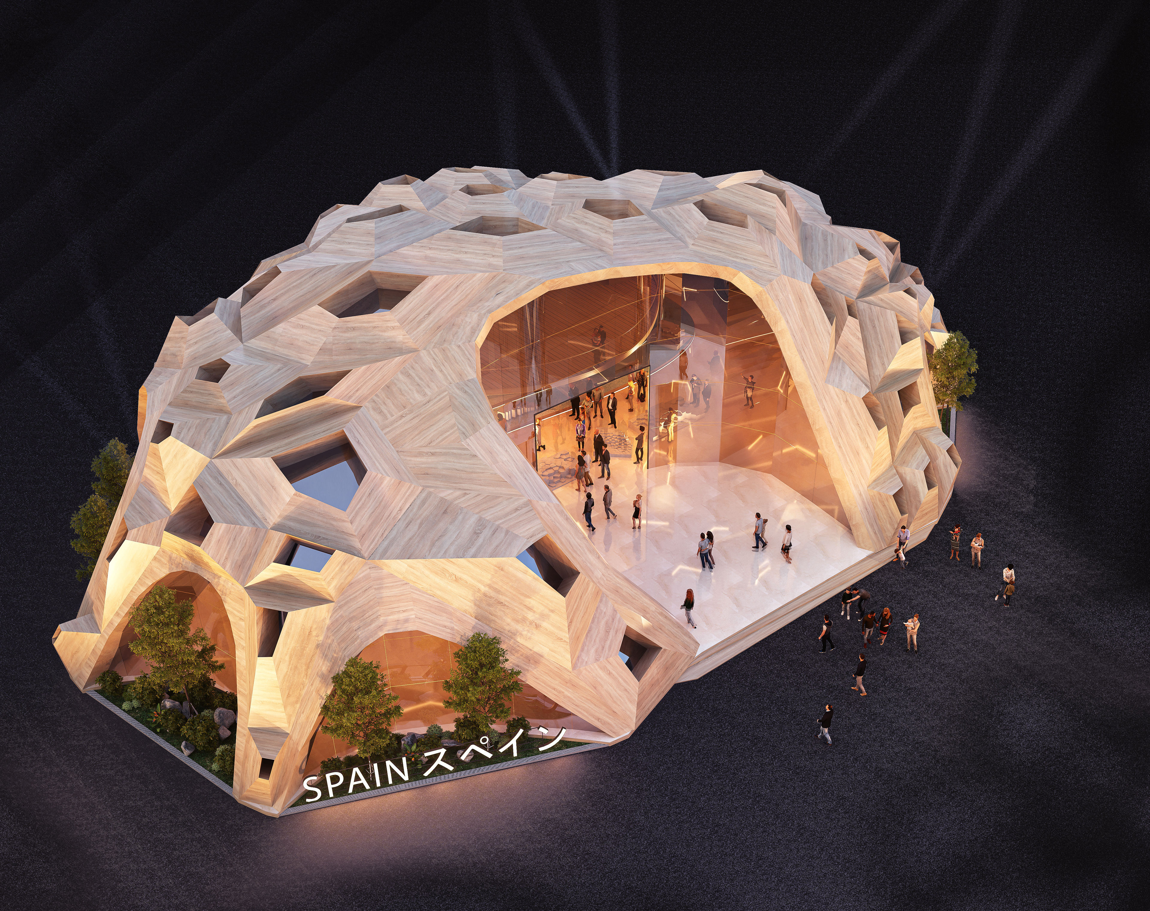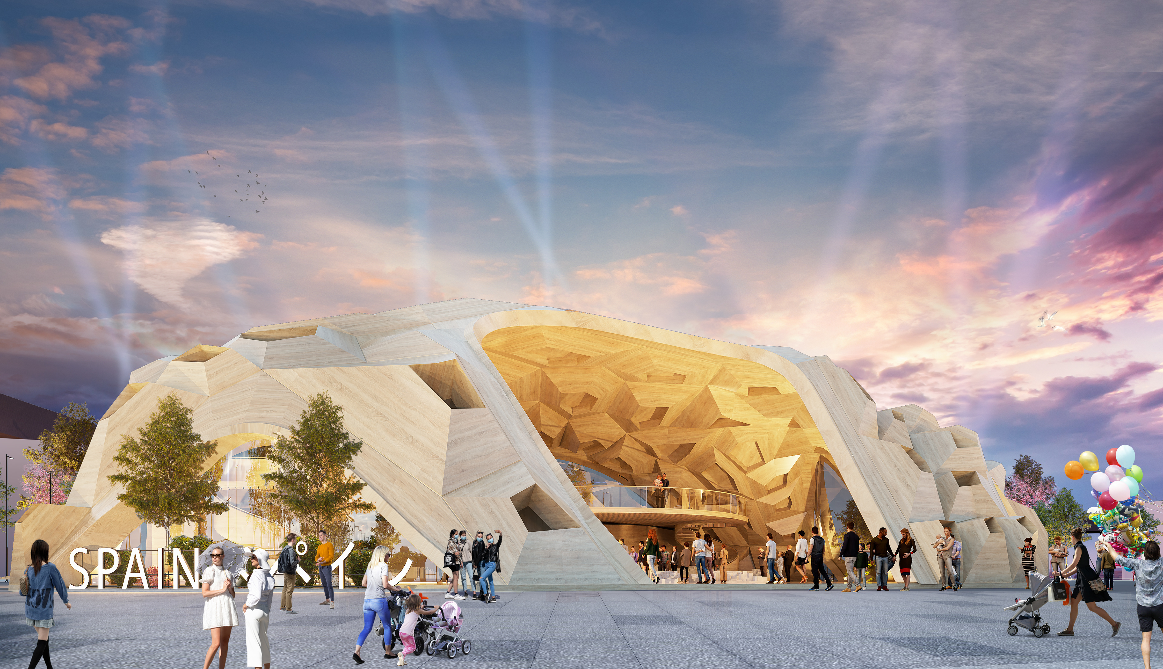 Ines J. Pedras wooden geometrical is the proposal pavilion to connect visitors with nature at Expo 2025 Osaka – The structure is ecologically responsible, that is, it reflects the underlying principles of nature while improving the systems that support opportunities in a welcoming Japanese Sakura space.